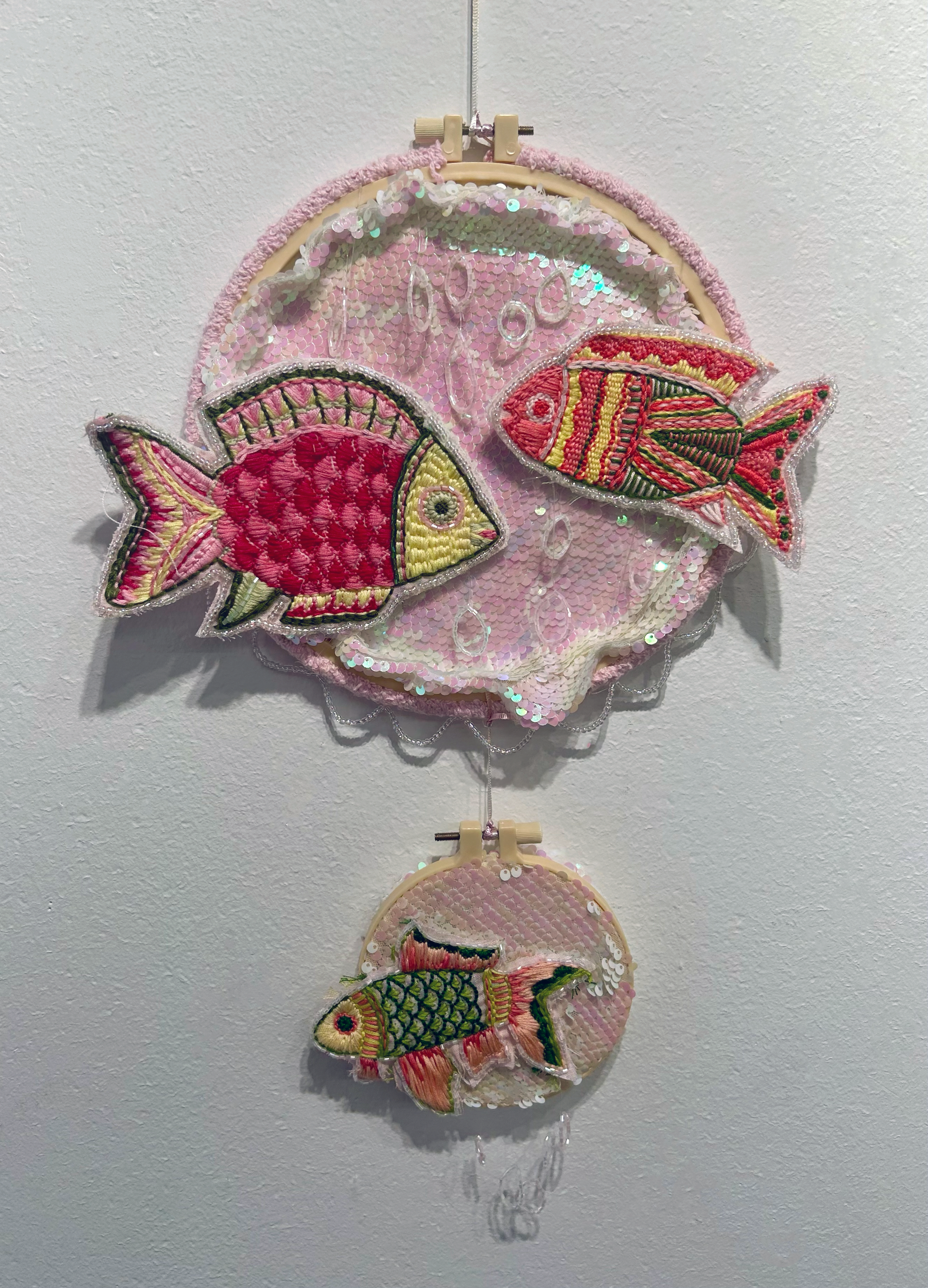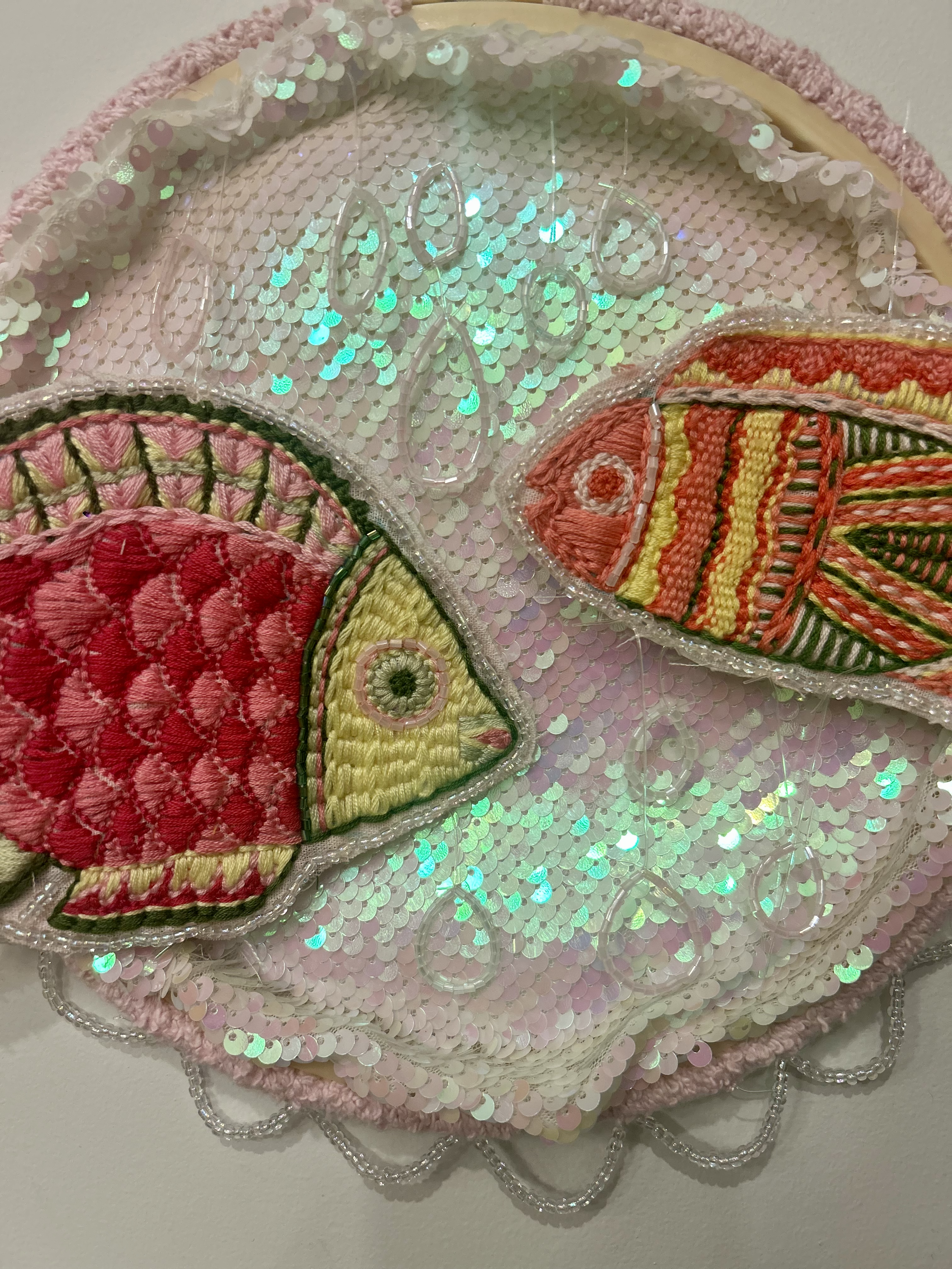 Hand Embroidered fish installation